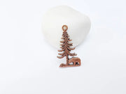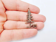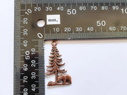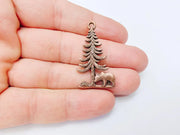 Bear and Tree Pendant, Forest Wildlife Charm, Hiking Camping Jewelry, Nature Earring, Rustic Outdoor, Antique Copper Plated 39x21mm G37105