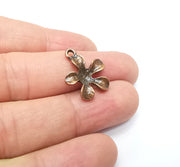 Flower charms are made of nickel free and lead free antique copper plated zinc alloy metal. Size : 21x17 mm.