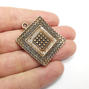 Square antique copper plated charms are made of nickel free and lead free zinc alloy metal. Size : 38x33mm