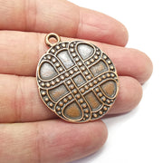 Antique copper round antique copper plated charms are made of nickel free and lead free zinc alloy metal. Size : 40x33mm