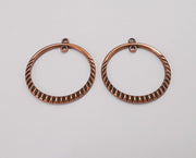 4 Ribbed round charms connector Double sided Antique copper plated charms (37x33 mm) G25249