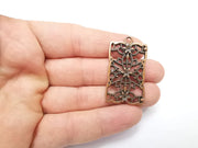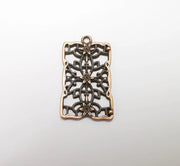 Rectangle Filigree Flower Dangle Charms, Antique Copper Plated Charms (44x25mm) G29273