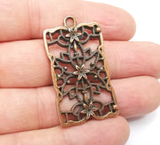 Flower Daisy Filigree Charms ,Rectangle Charms, findings are made of nickel free and lead free antique copper plated zinc alloy metal. Size : 44x25 mm.