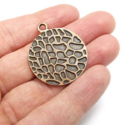 Web round antique copper plated charms are made of nickel free and lead free zinc alloy metal. Size : 39x33mm