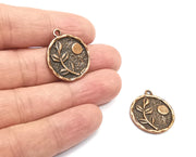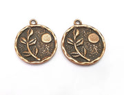 Branch Leaf Charms Plant Nature Stars Full Moon Moonrise Pendant Antique Copper Plated