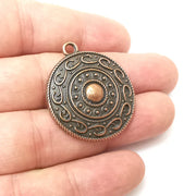 Round antique copper plated charms are made of nickel free and lead free zinc alloy metal. Size : 36x32mm