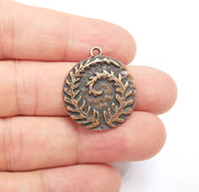 Fern Leaf Charms Hammered Disc Pendant Antique Copper Plated (28x24mm) G28175