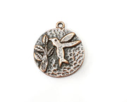 Bird Plant Charms, Antique Copper Plated (28x25mm) G33689