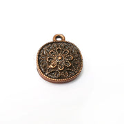 Flower charms are made of nickel free and lead free antique copper plated zinc alloy metal. Size : 22x18 mm.