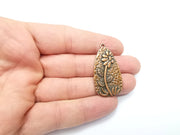 Flower Charms Antique Copper Plated Hammered Plant Charms (41x22mm) G29263