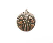 Hearts Charms Hammered Round Pendant Antique Copper Plated (28x24mm) G28520