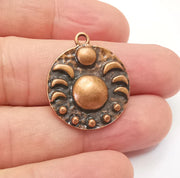 Crescent Moon Charms The Phases of The Moon, Round Hammered Ethnic Antique Copper Plated (29x25mm) G28833