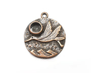 Stork and Mountains Charms Pendant Bezel, Resin Blank, inlay Mounting, Mosaic Frame Cabochon Base, Antique Copper Plated (6mm) G28679
