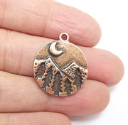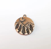 Mountain Tree and Crescent Charms Landscape Tree Moon charms are made of nickel free and lead free antique copper plated zinc alloy metal. Size : 28x24 mm.