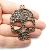 Skull flower antique copper plated charms are made of nickel free and lead free zinc alloy metal. Size : 61x43mm