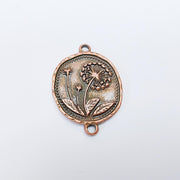 Dandelion Charms Connector Double Hole, Flower Pendant, Boho Charms, Earring Charms, Necklace Parts, Antique Copper Plated 33x24mm G37511