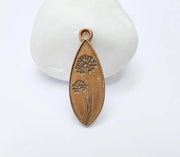This antique copper pendant features two delicately etched dandelions on a long leaf-shaped base—symbolizing wishes, hope, and nature’s freedom. Perfect for boho necklaces, nature-inspired jewelry, or meaningful gifts. The elongated teardrop shape adds elegance and a handcrafted vintage touch to your creations.