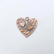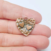 Antique Copper plated Hammered Heart charm, featuring a textured surface with two raised hearts, perfect for necklaces,Pendant, bracelets, earrings, and DIY jewelry projects.