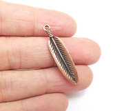 Feather, leaf charms antique copper plated charms are made of nickel free and lead free zinc alloy metal. Size : 38x9mm