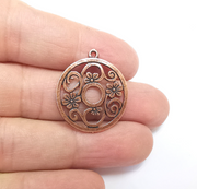 Flowers round charms are made of nickel free and lead free antique copper plated zinc alloy metal. Size : 29x25 mm.