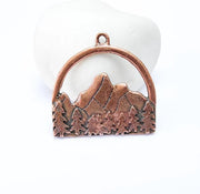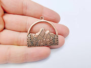 Mountain Forest Charms, Nature Landscape Pendant, Jewelry Supply, Boho Craft Finding Antique Copper Plated Pendant (35x34mm) G37069