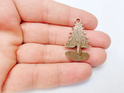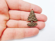 Fox and Tree Charm, Wolf Pine Tree Pendant, Wilderness Nature Earring, Boho Necklace Outdoor Accessory, Antique Copper Plated 36x23mm G37108