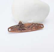This mountain tree bar connector features a scenic landscape with a raised evergreen tree and engraved mountain range. With two holes for easy stringing, it's ideal for creating nature-inspired bracelets, minimalist necklaces, or rustic outdoor-themed jewelry. A perfect charm for hikers, forest lovers, and handmade gift makers.