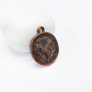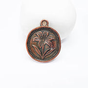 Lily Flower Charm Pendant, Botanical Coin Design, Copper Plated, 29x24mm, G37735