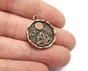 Lotus Full Moon Charms Round Night Pendant Antique Copper Plated Material : Nickel and lead free, Silver Plated Zinc Alloy (Zamac) Color: Antique Copper Size : 26x22 mm