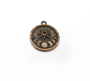 Antique Copper Plated Moon and Star Charms, Celestial earring component, Crescent Sun State of The Moon are made of nickel free and lead free zinc alloy zamac metal.