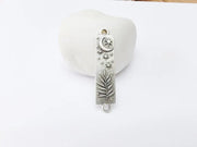 This antique silver plated rectangular pendant connector showcases a harmonious design featuring a crescent moon, twinkling stars, and a graceful palm leaf. Combining celestial and nature-inspired elements, this charm is ideal for boho, mystical, or rustic-themed jewelry creations. Perfect for necklaces, bracelets, or earrings, it adds elegance and meaning to any handmade piece. Crafted from high-quality materials, this pendant ensures durability and a timeless look, making it a standout addition to your jewelry collection.