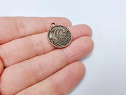 Ocean Wave Charm Pendant, Nautical Sea Life Charm, Beach Boho Earring Charms, Dangle Pendant, Antique Copper Plated Zamac 24x20mm G36664