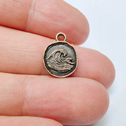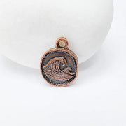 4 Ocean Wave Pendant, Wave Charm, Bracelet Charm, Earring Charm, Sea Symbol, Boho Beach, Surf Charm, Antique Copper Plated 16x13mm G37549