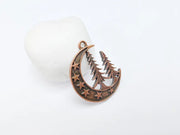 Moon Star and Pine Tree Pendant, Boho Charm, Earring Charm, Dangle Pendant, Necklace Parts, Antique Copper Plated Zamac 40x30mm G36685
