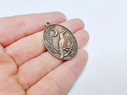 Raven and Moon Charm Pendant, Gothic Boho Charm, Nature Earring Charm, Mystical Bird, Necklace Parts, Antique Copper Plated 40x28mm G36671