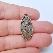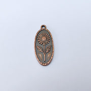 This sunflower pendant charm showcases a detailed embossed sunflower design within an elegant oval frame — perfect for creating nature-inspired jewelry pieces. Its antique Copper plating gives it a rustic and timeless look, making it suitable for boho, vintage, or summer-themed designs.
