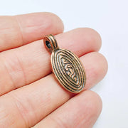 This antique Copper plated round pendant features a textured organic surface that adds depth and character to handmade jewelry designs. Its solid zamac structure and rustic artisan finish make it ideal for boho necklaces, charm bracelets, mixed-media projects, and earthy jewelry themes.