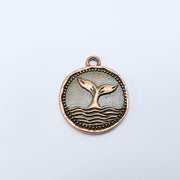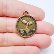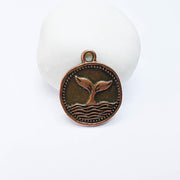 Whale Tail Charm Pendant, Ocean Symbol Coin Design, Copper Plated, 29x24mm, G37748