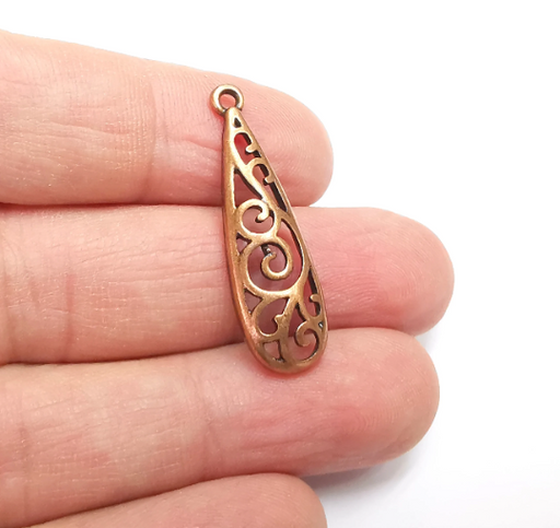 Drop pear charms are made of nickel free and lead free antique copper plated zinc alloy metal. Size : 51x22 mm.You can use these charms on earrings...