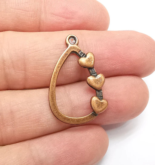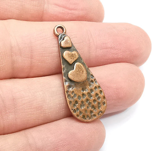 View full details2 Heart Charms Hammered Teardrop Pendant Antique Copper Plated (33x13mm) G29270