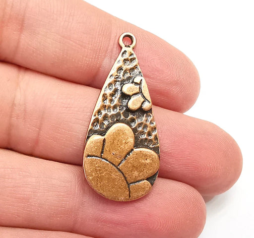Flower, Drop Hammered Charms, are made of nickel free and lead free antique copper plated zinc alloy metal. Size : 38x17 mm.You can use these c...