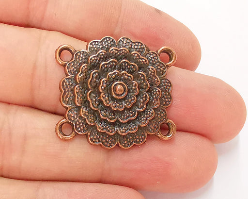 2 Flower Charms Connector Antique Copper Plated Charms (30x28mm) G22747