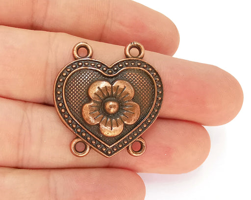 View full details2 Heart Flower Connector Charms with four Loop Antique Copper Plated Charms (32x30mm) G22726