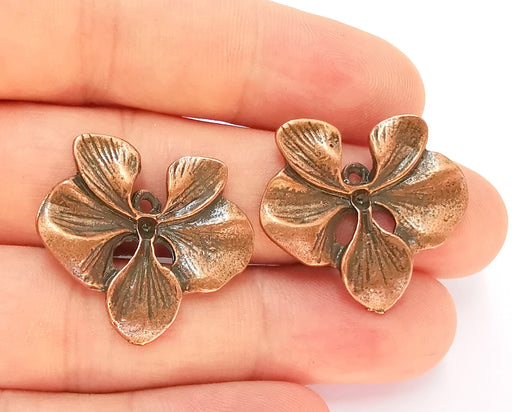 2 Flower Charms Antique Copper Plated Charms (29x27mm) G22502
