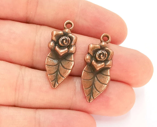 4 Rose Charms Antique Copper Plated Charms (26x25mm) G22548
