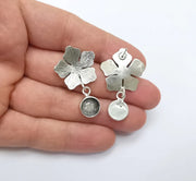 Flower Dangle Earring Blank Base Wire Antique Silver Plated Brass