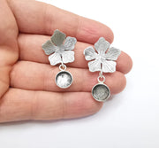 Flower Dangle Earring Base Wire Earring Blank Antique Silver Plated Brass Earring Base (10mm blank) G27168