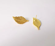 Leaf Earring Stud Base Gold Plated Brass Earring 1 pair (30x13mm) G24887