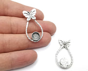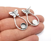 Butterfly Drop Earring Blank Base Settings Silver Resin Cabochon Inlay Blank Mountings Antique Silver Plated Brass (8mm blank) 1 Set G27340