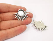 Sun Earring Blank Backs Antique Silver Resin Base inlay Blank Cabochon Mountings Antique Silver Plated (16mm blank) 1 pair G24648